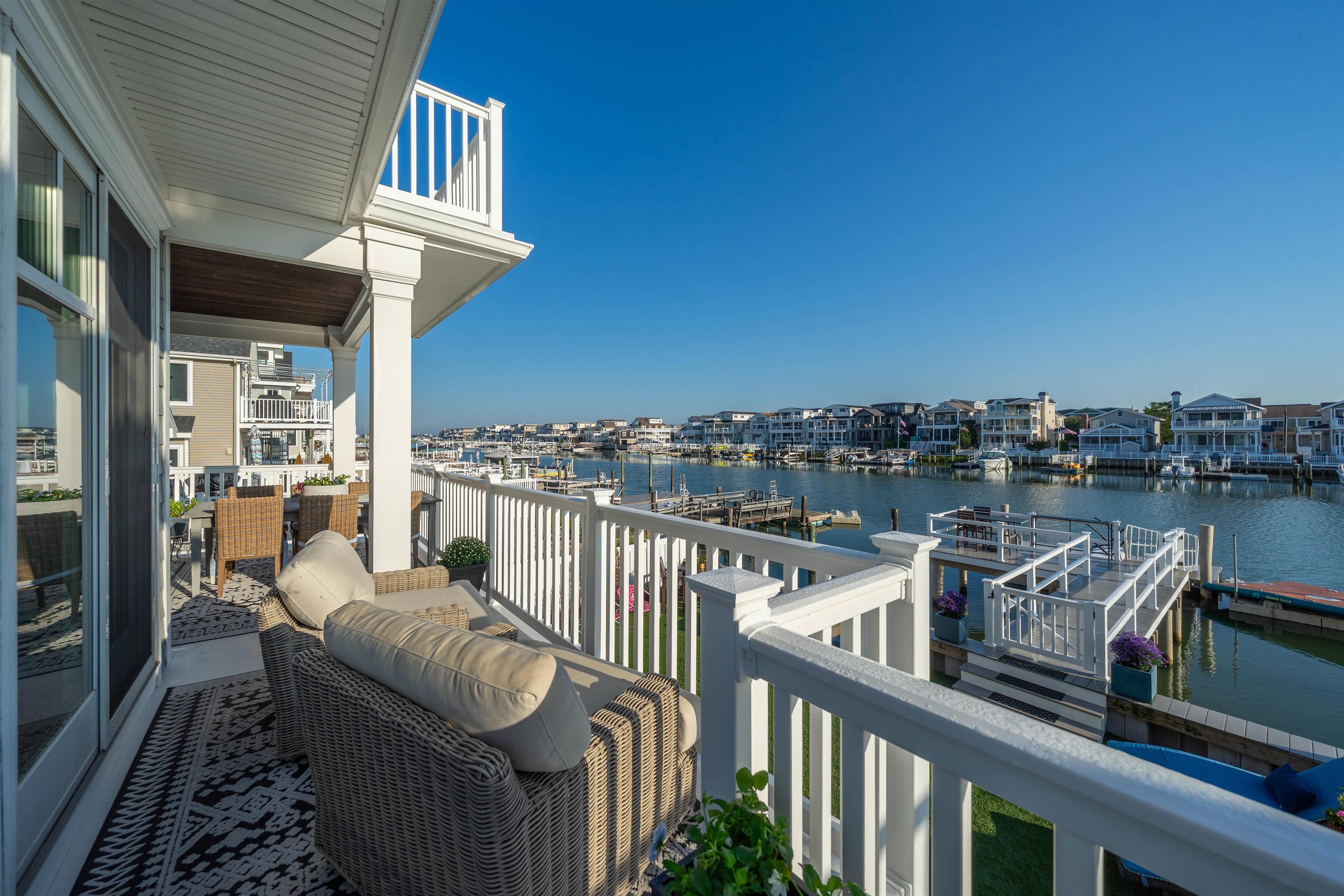 Exceptional 3 story waterfront property, featuring a traditional floor plan, serves as an ideal retreat by the bay. Offering endless water views, this home boasts 6 bedrooms and 4.5 bathrooms with unique custom finishes, high ceilings with custom woodwork and trim including coffered ceilings and wainscotting, modern conveniences, and beautifully decorated throughout. Upon entering, a warm foyer entrance guides your views straight back to the bay views. There is a cozy family room with a full bath that could be used as a 7th bedroom. You'll pass a powder room and fully equipped laundry room as you enter the spacious main living area with a gas fireplace, a chef-worthy gourmet kitchen with generous center island, and a cozy dining space overlooking the bay. There is a partially covered deck with easy access to the ground level, in-ground pool and cabana, stationary deck, dock and boat slip on the water. Well furnished outdoor living areas provide a perfect summer oasis! Ascending the staircase to the second floor leads you to a private primary bedroom with a walk-in closet, luxurious custom bathroom and a private deck overlooking the expansive water views. There are 3 additional spacious bedrooms on this floor, and a large, shared hall bathroom. The 3rd floor is for the kids and grandkids! Featuring two large bedrooms, one with 2 sets of bunk beds and a shared hall bath in between. This home provides plenty of storage and closet space throughout the interior as well as a full stand-up crawlspace complete with storage areas and an entertaining cabana like room with a pass-through window to the pool and bayside yard. There is a one car attached garage and 2 off street parking spaces on the paver driveway. This waterfront haven is made for boaters, boarders and floaters! Beautiful sunset skies and endless outdoor activities are here to be enjoyed with all that bayfront living has to offer! Short stroll to Avalon's town center with shops and restaurants, easy boating access to the inlet ocean, and 4 blocks to the island's pristine beaches. Easy to show.