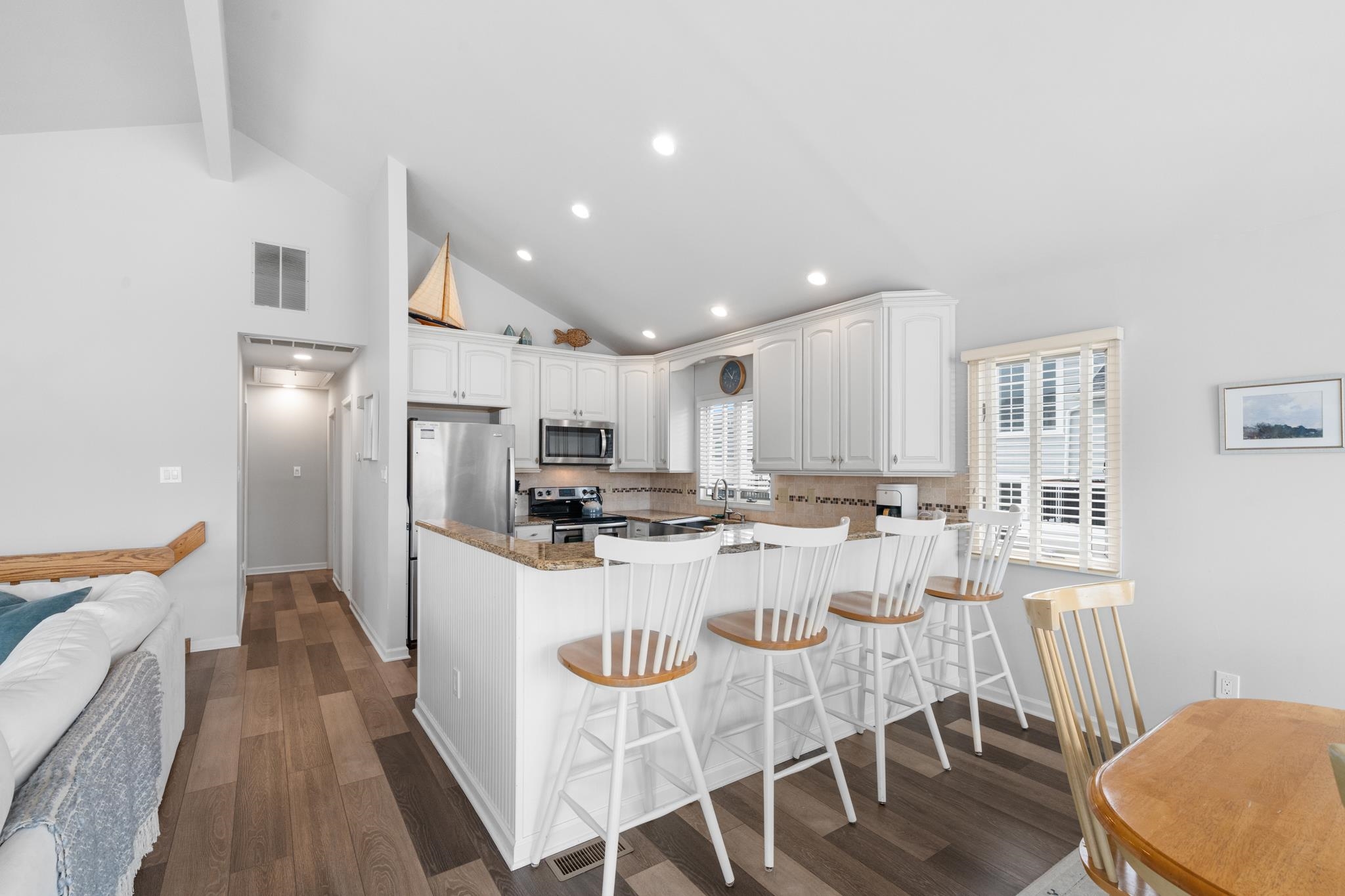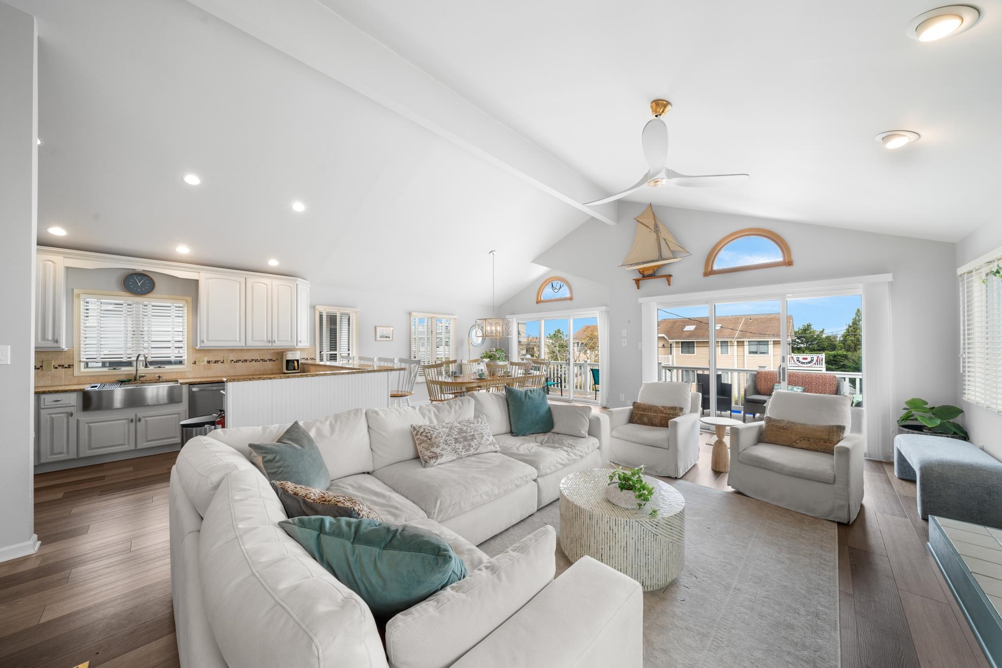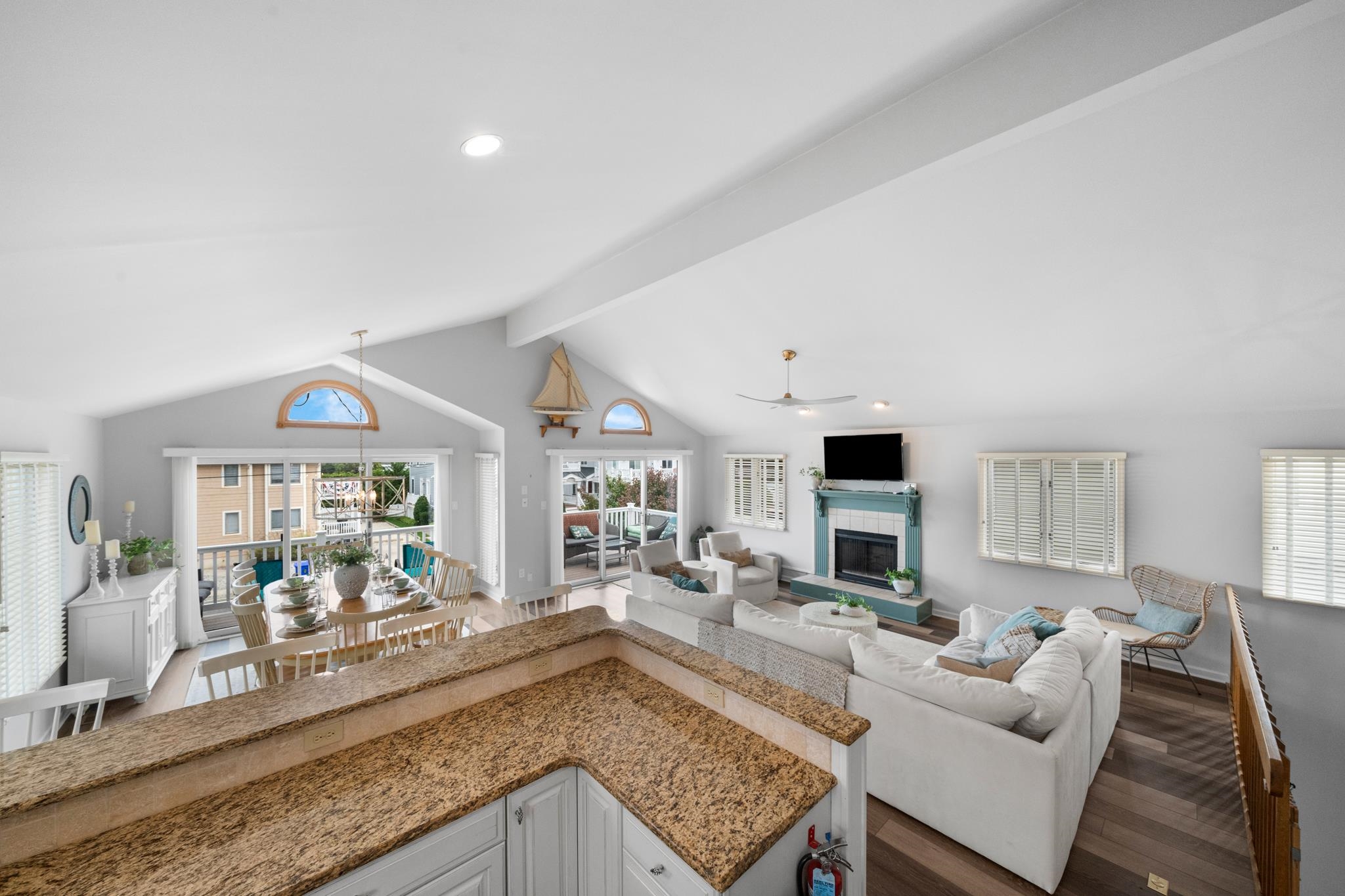 When looking for a single-family home located within two blocks of the beach in Avalon Stone Harbor, this is the lowest price you ll find for the most substantial home! The super convenient Park-n-Walk location has just one street to cross on the way to some of the widest beaches on the entire Island, and you can leave the car parked and walk to all sorts of popular destinations! There s plenty of room for family & friends with the 5 bedroom, 3 bath floor plan, which also features a Family Room and a Laundry Room. The First Floor Family Room opens to a southern exposed deck and then down to a private rear yard, which is ideal for those summertime BBQs with family & friends, or a setting for a beautiful new pool if you d like! The 2nd Floor features a wide-open Living Kitchen Dining area with a soaring cathedral ceiling above! Sliding doors provide convenient access from the Great Room to a large deck that spans the width of the property. The updated Kitchen features granite counters complimented with a tile backsplash, stainless steel appliances (including a new dishwasher) and custom cabinetry. This home has enjoyed numerous updates, including a new kitchen, new flooring, new bathrooms, new decks, a new roof (2020), and new heating & air conditioning in 2017. There s also an oversized detached garage, which is perfect for storing your beach gear, bikes, a golf cart and more! The property commands a peak weekly rental rate of $10,000. No leases have been accepted for the 2026 season. Other nearby popular destinations include the Public Dock located at 33rd & the bay, (where you can fish, crab and enjoy the sunset), Public Recreation areas located at 30th Street (next to the Avalon Public School) , 39th Street (tennis and a playground), and there s a playground and all sorts of events happening at Avalon s Surfside Park and the Avalon Community Center, which are located on the beachfront at 30th Street. In addition, Avalon's award-winning library is located on 32nd Street, and the boardwalk spans along the beachfront from 32nd Street to 21st Street - it s the perfect setting for a relaxing walk or an invigorating run! The home is being sold furnished in turn-key condition!